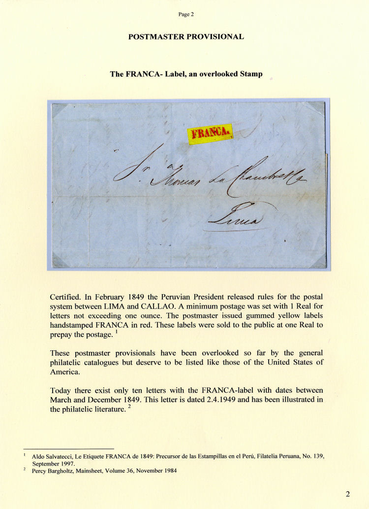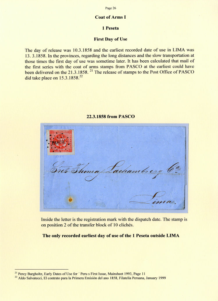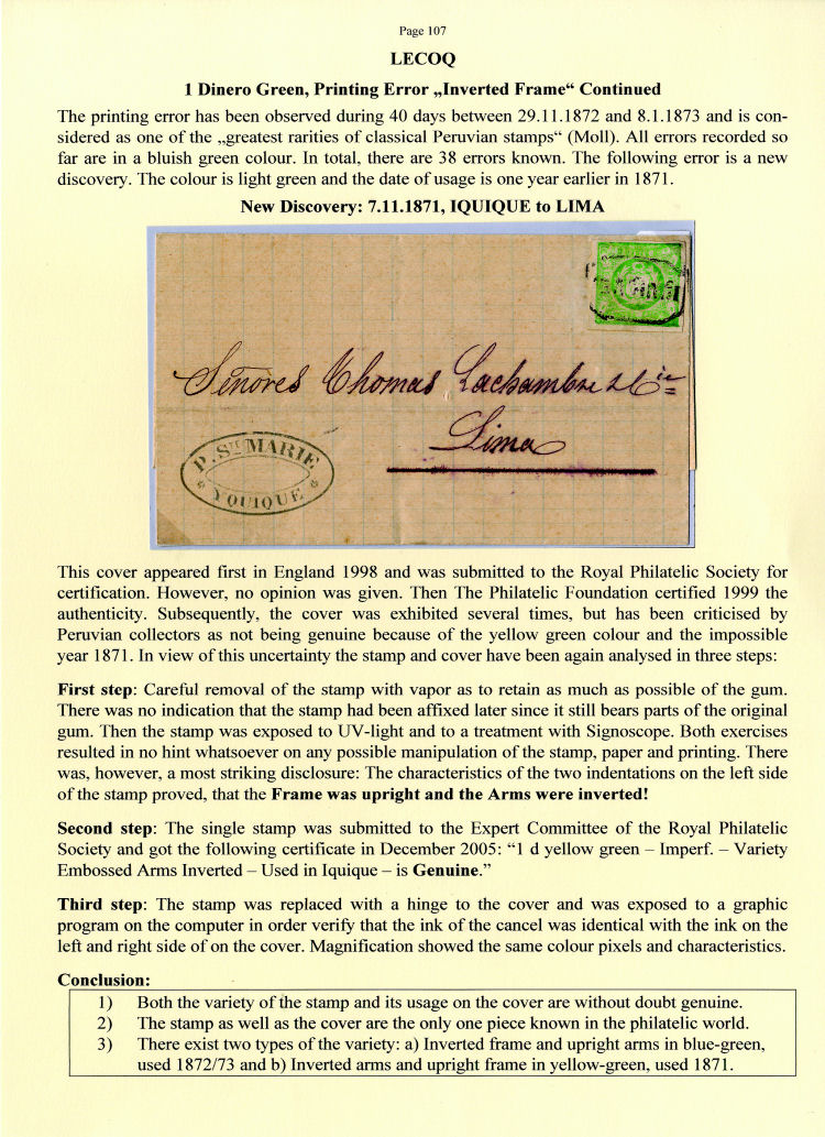 Die Veröffentlichung des Exponates im Internetforum des BDPh erfolgt mit freundlicher Genehmigung von Corinphila/Köhler, den Herausgebern der Serie „Edition d’Or“, wo dieses Buch „Peru“ im Jahre 2007 erschienen ist.