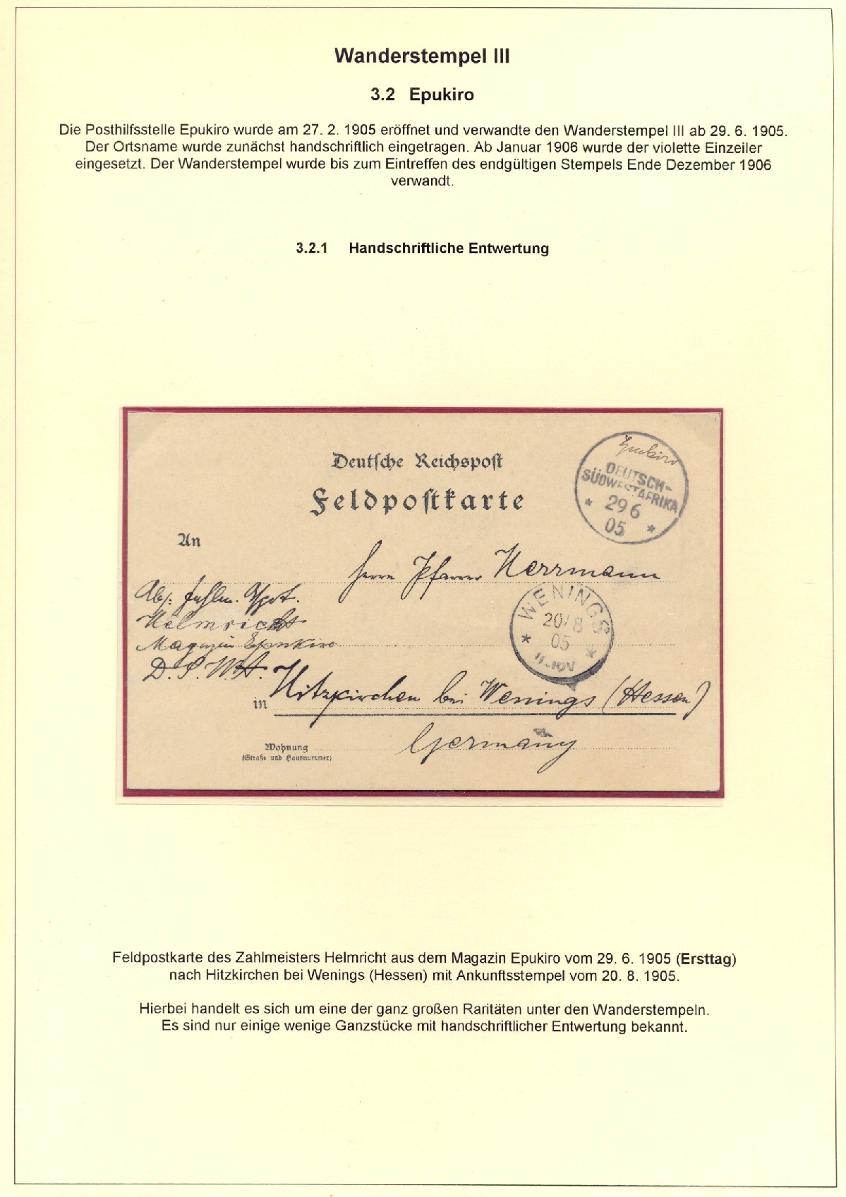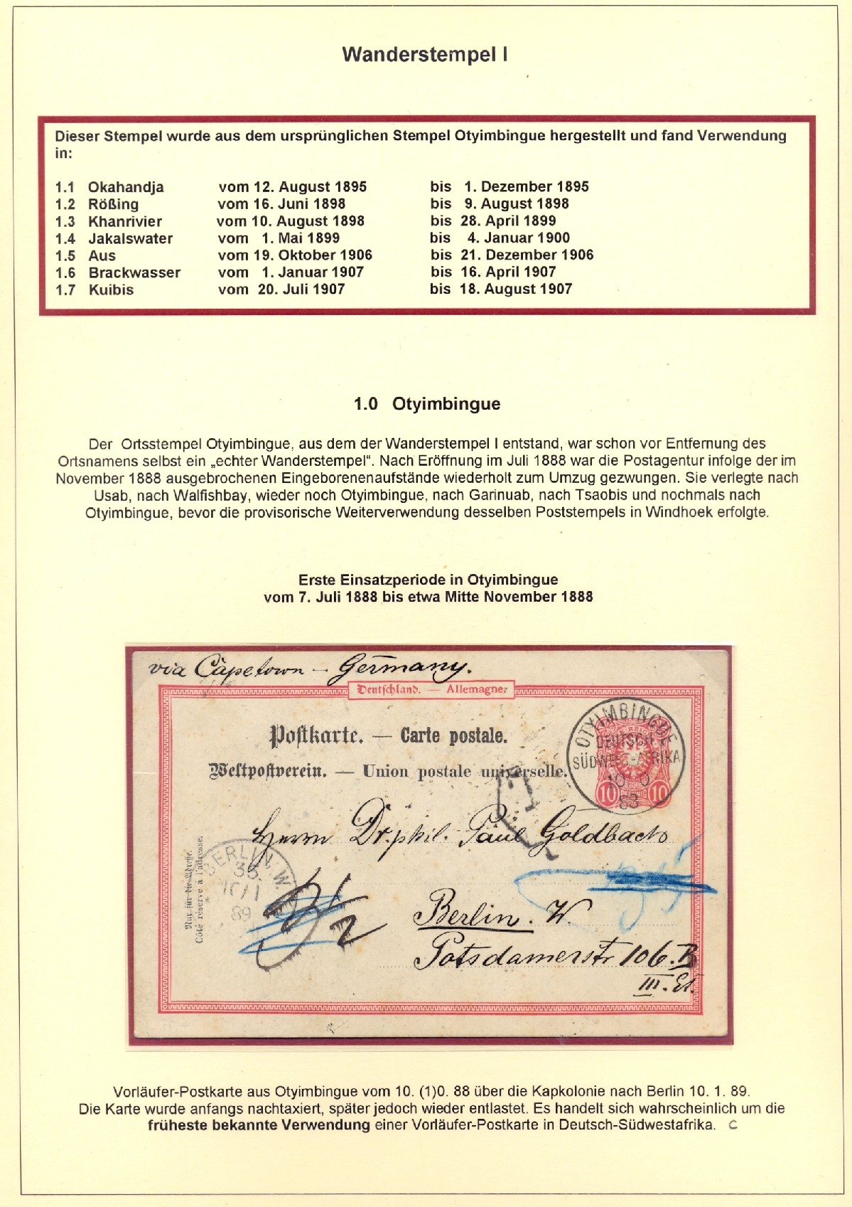 Die Wanderstempel Deutsch-Südwestafrikas